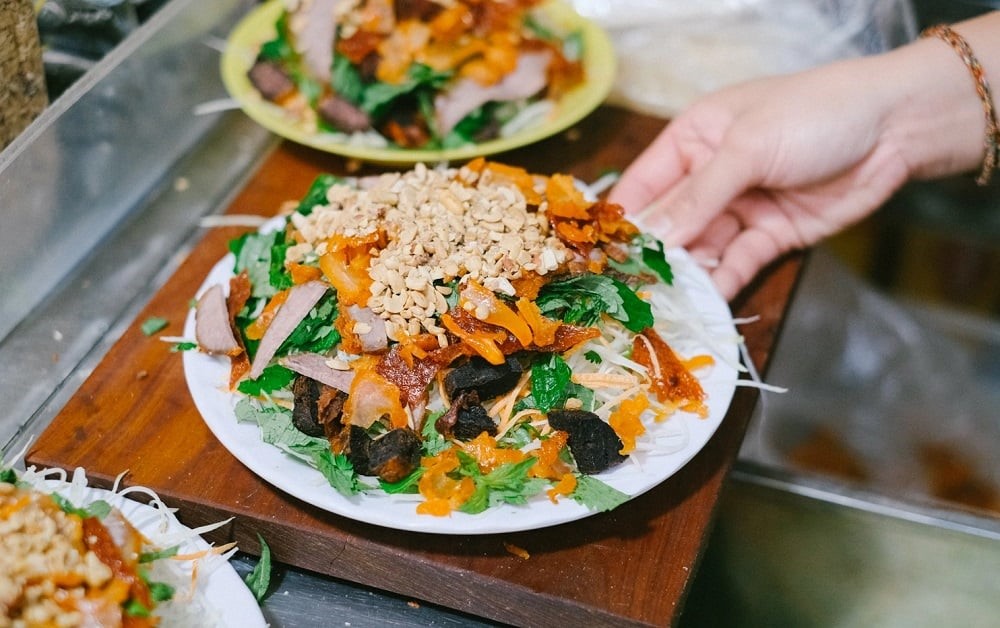 Nộm bò khô là kết hợp giữa sự giòn ngon của bò khô, đu đủ bào và hương vị tươi mát của rau sống (Ảnh: Sưu tầm)